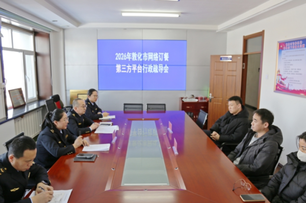 为切实保障全市人民群众饮食安全,贯彻落实省、州专项工作要求,敦化市市场监督管理局全面部署“幽灵外卖”专项整治工作,1月19日,对网络餐饮服务第三方平台企业开展行政疏导会,网络交易监督管理科、餐饮服务监督管理科、美团、饿了么负责人参与本次会议。