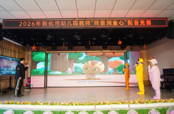 为深入推进“童语同音”计划实施,扎实提升幼儿园教师语言表达能力,创新学前语言教学实践形式,3月27日,敦化市教师进修学校在市第二幼儿园小剧场举办2026年幼儿园教师“师音润童心”配音竞赛。全市各公办幼儿园教师踊跃参赛,以声为媒绽放专业光彩,用灵动演绎传递教育温度。